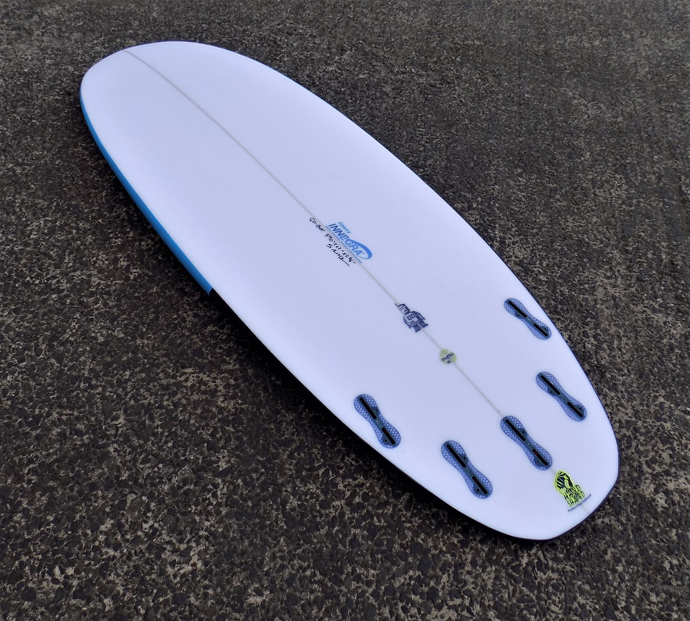 Cooly Weirdy Superfused EPS blank, glassed in Innnegra Epoxy Surfboard skin.